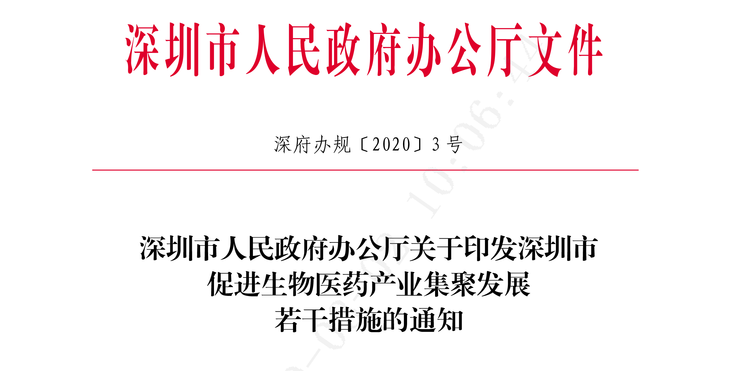 3月5日,深圳市发改委官网发布了“1+3”四份推动生物医药产业聚集的重磅政策文件!包括《深圳市促进生物医药产业集聚发展的指导意见》及《深圳市生物医药产业集聚发展实施方案(2020-2025年)》《深圳市生物医药产业发展行动计划(2020-2025年)》《深圳市促进生物医药产业集聚发展的若干措施》三份配套文件。