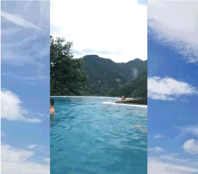 最惊喜的是山顶上的180°无边泳池,游至边际,四周是穿岩山美景,俯身向下是高山峭壁。在高山之颠,群山环抱中,畅游在碧波荡漾的瑶池中,让精神和身体都得以暂时休憩。