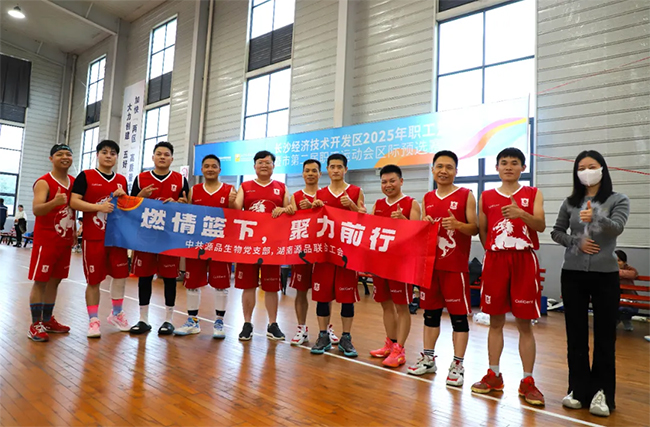 近日,2025年长沙经开区职工篮球联赛火热开赛。由中共湖南源品细胞生物科技有限公司联合支部委员会、湖南源品联合工会组建的源品生物篮球队,在赛场上全力以赴、奋勇拼搏,用汗水诠释信念,用团结书写精彩!